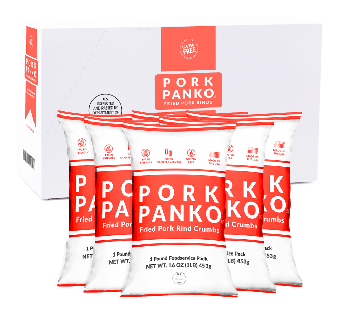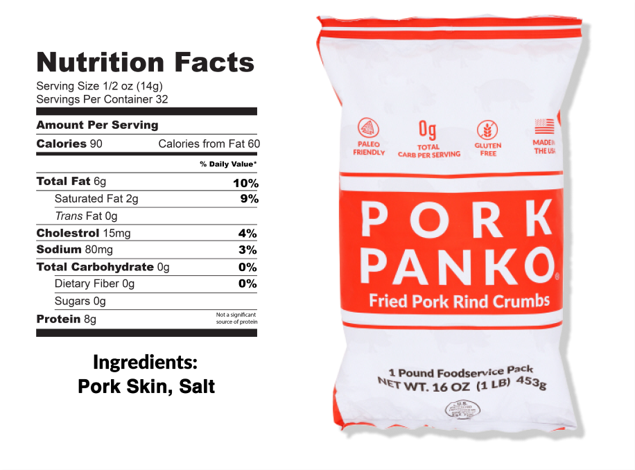 Made with only two ingredients, our Pork Panko adds the most delectable crunch to any dish! A flaky, crispy, breadcrumb alternative made exclusively from finely ground pork rinds and rock salt, Pork Panko goes anywhere breadcrumbs do and opens up a world of variety to customers who may struggle with gluten intolerances.