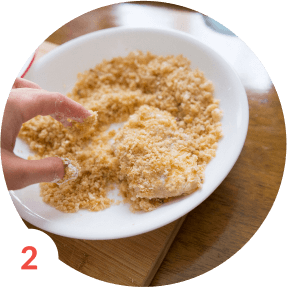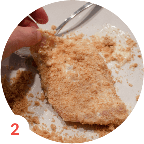 Cover the chicken with Pork Panko. Ensure that both sides have an even coating and apply generously until the mayo is no longer visible