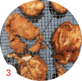 Dredge the chicken one by one into the seasoned flour, then into the egg, and lastly into the Pork Panko
