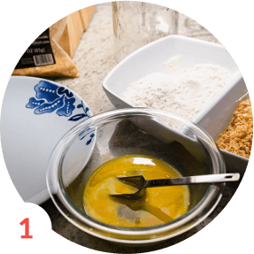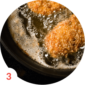 In three separate bowls, add Pork Panko, flour (herbs & spices optional), and eggs to create the dredging station